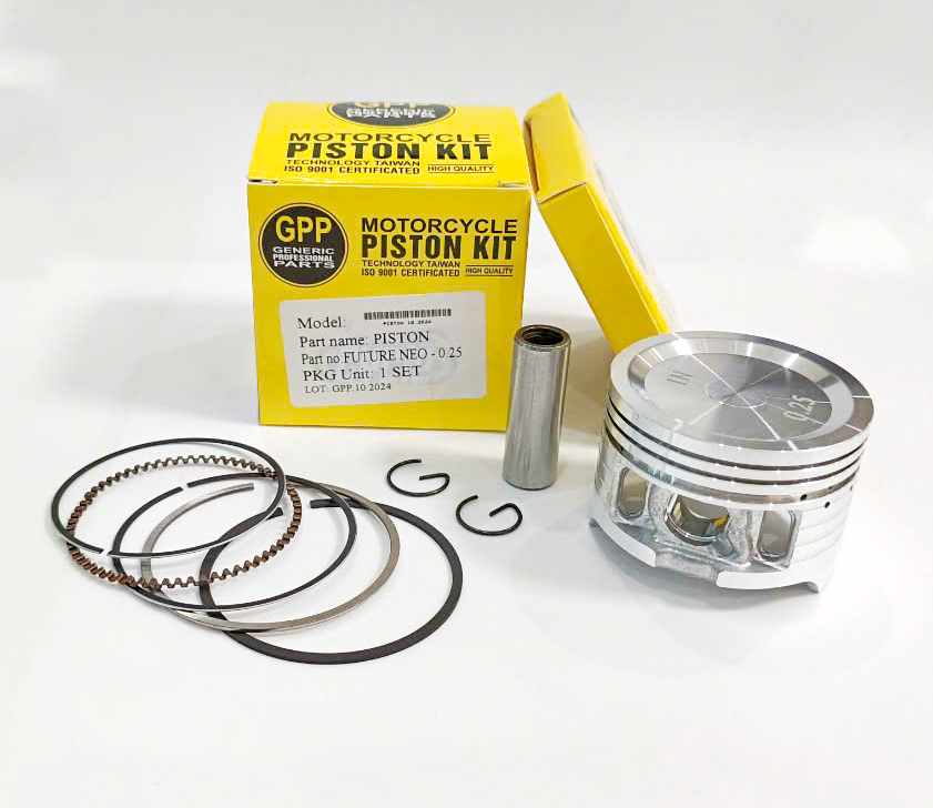 Bộ PISTON KIT HONDA FUTURE NEO (M, D) thương hiệu GPP là phụ tùng thay thế cao cấp cho các dòng xe Honda Future Neo, Future Neo FI, Future 125 – giúp động cơ hoạt động mạnh mẽ, bền bỉ và tiết kiệm nhiên liệu như mới.
