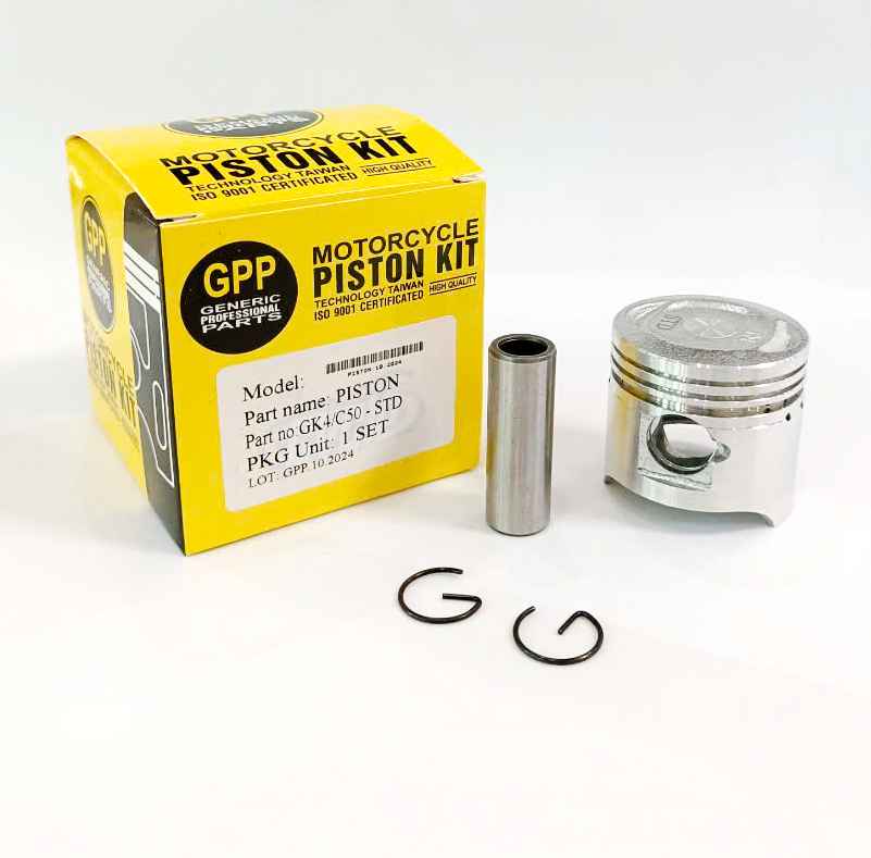 Bộ PISTON KIT HONDA GK4 / C50 thương hiệu GPP là phụ tùng thay thế cao cấp cho các dòng xe Honda C50, Cub 50, Super Cub đời cũ – giúp động cơ hoạt động mạnh mẽ, bền bỉ và tiết kiệm nhiên liệu như mới.
