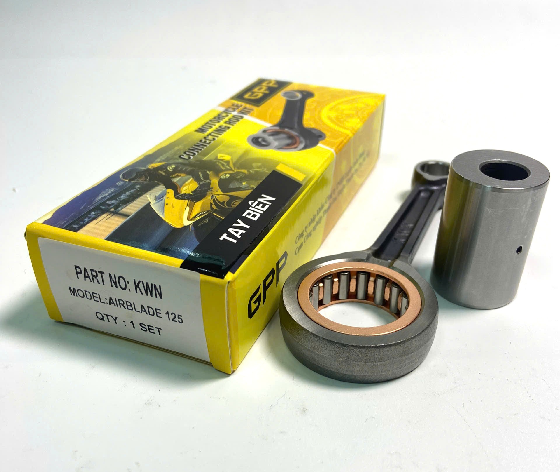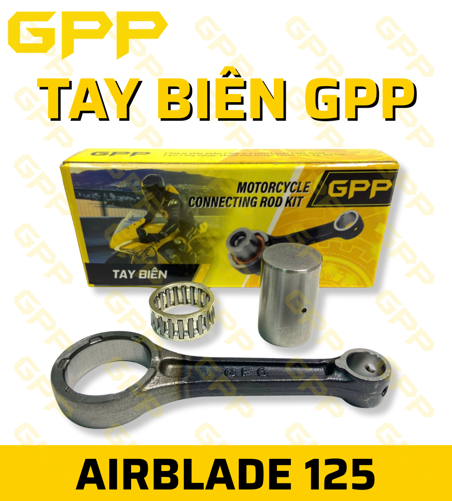 Tay biên (thanh truyền) AIR BLADE 125 / PCX 125 thương hiệu GPP là phụ tùng động cơ cao cấp, được sản xuất theo tiêu chuẩn OEM dành riêng cho các dòng xe Honda Air Blade 125 và PCX 125. Sản phẩm giúp truyền lực tối ưu từ piston xuống trục khuỷu, đảm bảo động cơ vận hành mạnh mẽ, ổn định và bền bỉ trong mọi điều kiện.