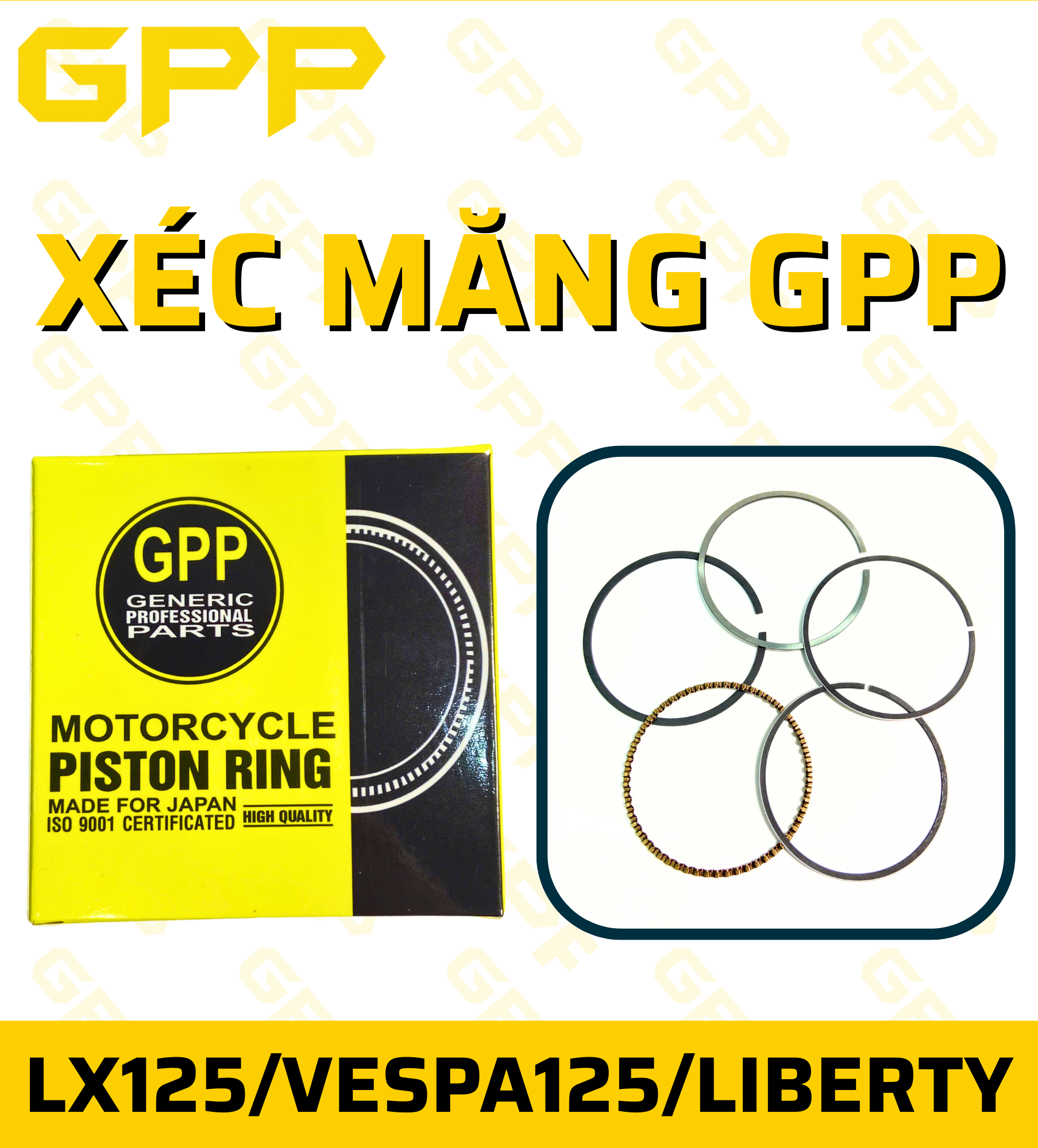 Xéc măng GPP là dòng xéc măng chất lượng cao do Công ty TNHH Luyện Luân Hưng phân phối, thiết kế loại dày – 5 chi tiết, giúp làm kín buồng đốt hiệu quả, gạt dầu tốt, hạn chế khói và hao dầu, cho động cơ vận hành êm và ổn định lâu dài.
